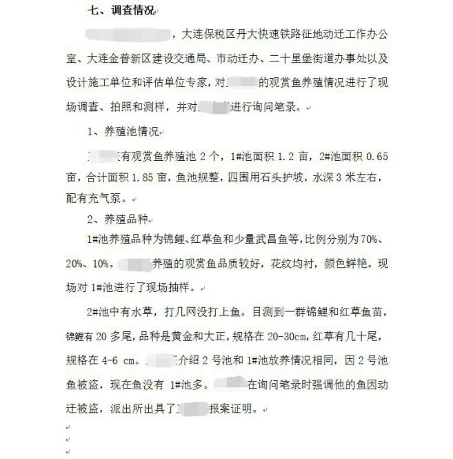 ①大连保税区亮甲店街道XX养殖场资产搬迁补偿价格评估报告