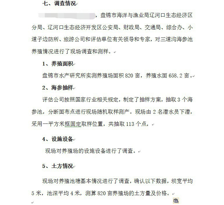 ①大洼县XXX水产养殖场海参资产价格评估报告